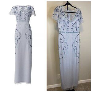Papell Studio Embellished Sequined Long Dress Pale Blue
