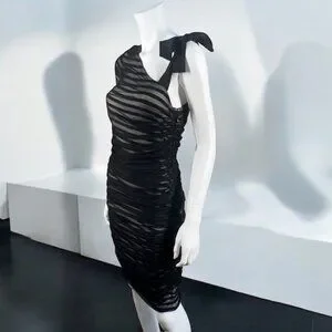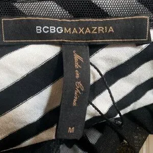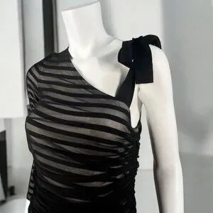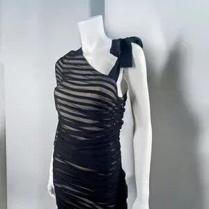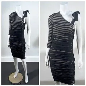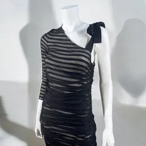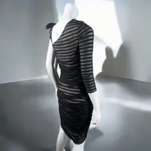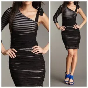 BCBGMaxAzria One Shoulder Striped Mesh Overlay Pencil Dress Black, size Medium