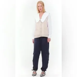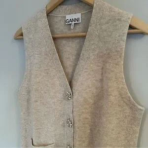 NEW Ganni Cashmere Mix Button Vest Sweater in Oyster Gray / Cream - size XS