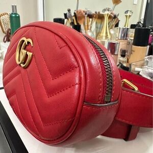 GUCCI Calfskin Matelasse GG Marmont Belt Bag sz 85/34. Vintage, Red. Fanny pack.