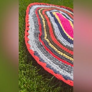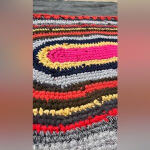 HANDMADE crochet upcycled recycled multicolor colorful bohemian mat 35" by 21"