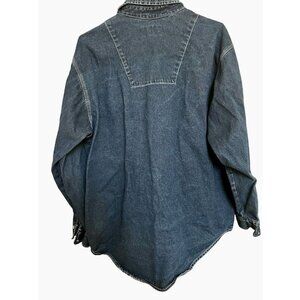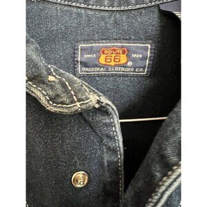 Route 66 Men Denim Shirt Pearl Snap Dark Blue Motorcycle Jacket L Vintage