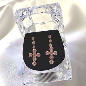 NWT CLEAR Rhinestone CROSS silvertone earrings in a cute acrylic jewelry box. I couldn't get very good pictures but these 1 inch post dangle earrings really sparkle and are truly a clear rhinestone.