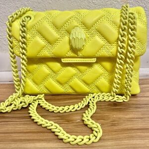 KURT GEIGER LONDON Kensington Drench Mini Leather Shoulder Bag Bright Lemon Neon