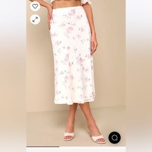 Lulu’s Ivory Floral Midi/Maxi Skirt, size L