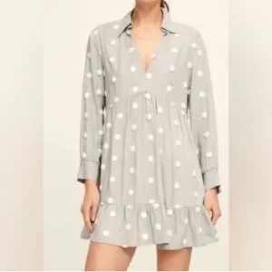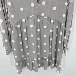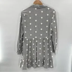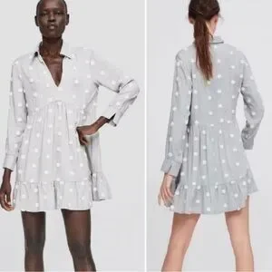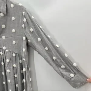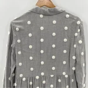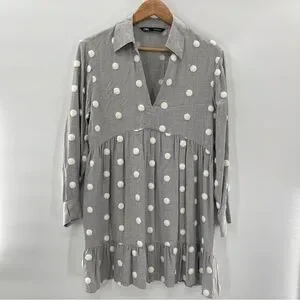 Zara Pom Polka Dot Babydoll Mini Contrast Dress Gray White Shirt Size Medium