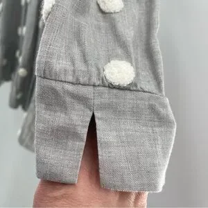 Zara johnny collar dress with long sleeves, a seam at the waist, and contrast polka dot applique details. Super cute, flirty dress, V neck, and ruffle hem.