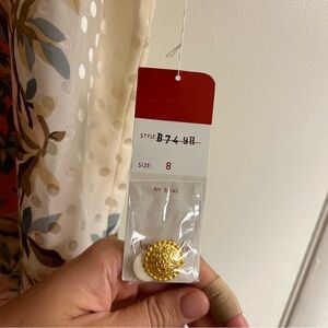 NWT Maggy London Vintage Silk Blouse, Size 8. Fits like a medium, please see measurements. Lovely! Covered buttons. Slightly poofy shoulders, interior structure is picture. Top gold toned statement button.