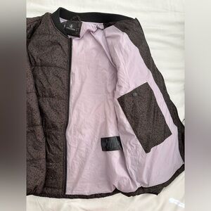 Volcom, size M(8), black/ dark brown/ lavender print puffer jacket. Excellent condition with no flaws. Lightweight, zip front