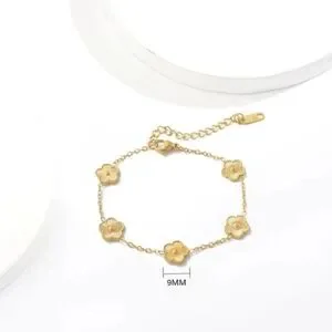 Stainless Steel Gold Plated Clover Charm Bracelet Luxury Five Leaf Flower Bracelet Jewelry For Women, New, please check out all pictures, Thank you.