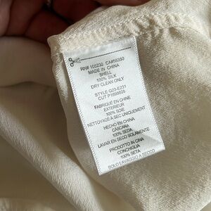 Semi-fitted utility blouse in 100% silk. Purchased from Nordstrom. Well cared for — hand wash and dry clean only. Great condition. All buttons remain. No stains or marks. Very classic addition for work or casual wardrobe.