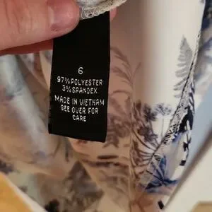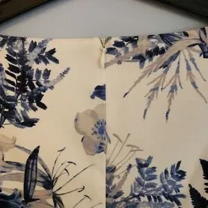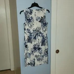 BARELY WORN very pretty blue and white floral pattern bodycon dress bust 36" length from nape of neck 35" unlined super stretchy