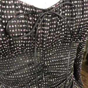 For Love & Lemons Victoria's Secret semi-sheer sparkle glitter shimmer dotted ruched stretch bodycon sheath short thigh-length mini dress