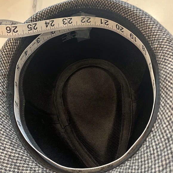 Men’s Van Heusen Fedora Black and Gray. Has Headband with Van Heusen on a tiny silver plate attached to the headband. ML-MG see photo with approximate measurement. 90% Polyester and 10% Wool. Like new condition.