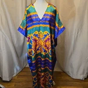 EUC colorful print Kaftan- possibly vintage 100% polyester- one size fits most