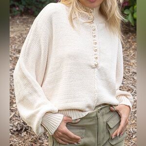434. POL LAST 1! Sweater Women Oversized Cream Slouchy Long Sleeve Bead Button