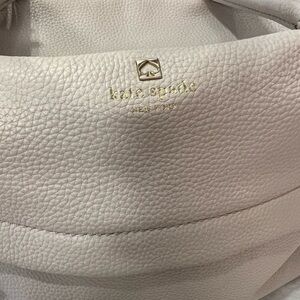 KATE SPADE PURSE :This is a beautiful beige leather Kate Spade bag. It is in good condition except - little scrape on the edge’s as seen in pics . It is hardly noticeable. It is a nice soft leather.