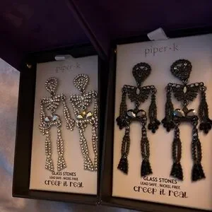 Black stone skeleton earrings and regular color glass stone skeleton earrings set. Sparkly and ready for Halloween