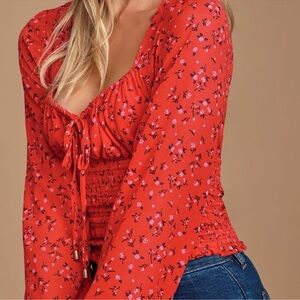 Free people Lolita red ruffle smocked ditsy floral top. Excellent condition, only worn once