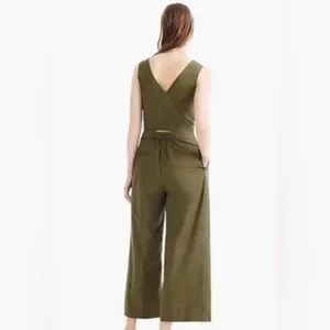 J CREW Olive Green Wrap-Tie Jumpsuit Stretch Paplin Size 2
