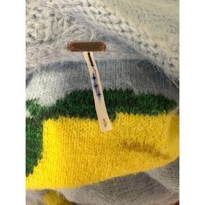 So fun and fuzzy, this playful pullover is featured in a soft knit fabrication and slouchy silhouette with oversized fruit detail and dropped sleeves.
