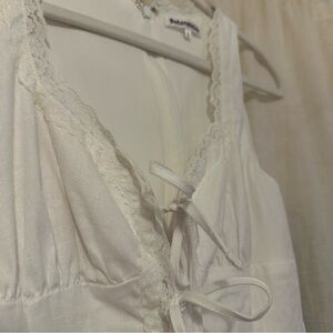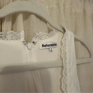 Reformation reia linen white dress with lace and bow detail size 2