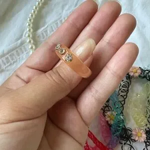 Y2K and 90s style jewelry lot with translucent ring, 8 stretch tattoo chokers, a faux pearl necklace, and a butterfly pin.