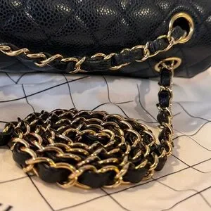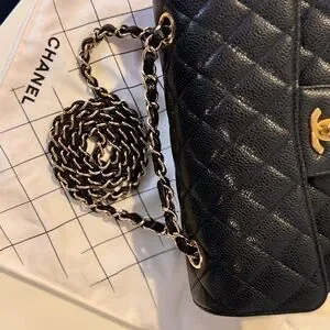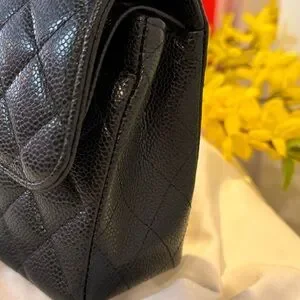 This 2022 Chanel Classic Flap Bag Caviar Small is a must-have for any collection. With its iconic black leather exterior and gold hardware, this bag is perfect for any occasion, from casual outings to formal events. The bag features a turn lock closure and a crossbody strap made of both leather and metal, making it comfortable to wear for extended periods of time.