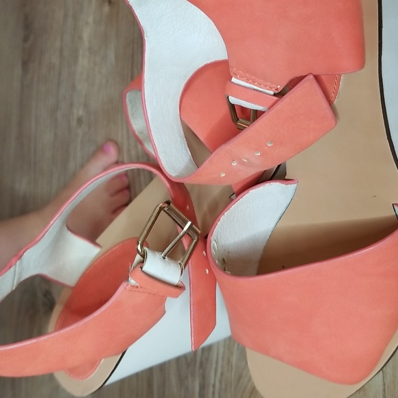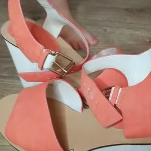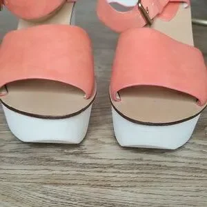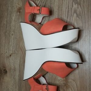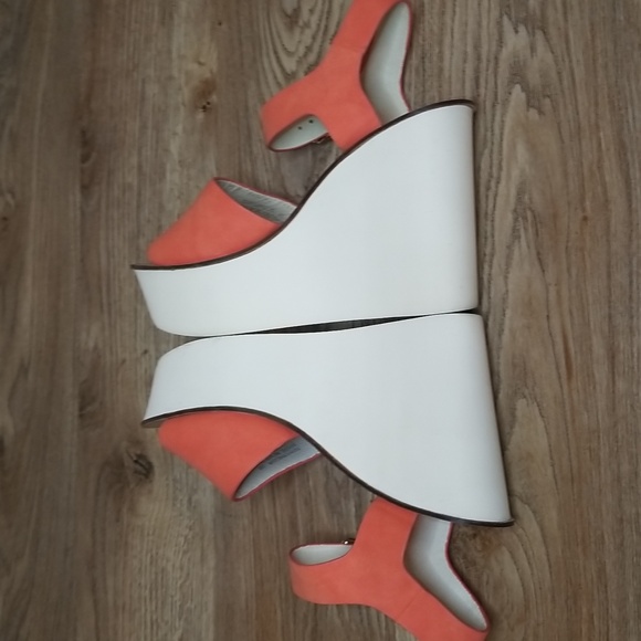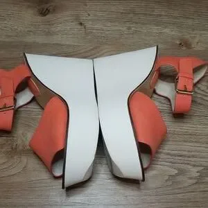 Topshop Womens Coral White Platform Wedge Heel Sandals