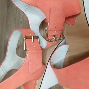 shoes, orange, peep toe, summer, tan, statement shoes, block, chunky, beach, chunky