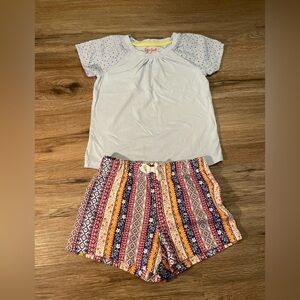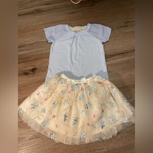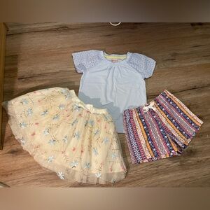 Baby blue top is Cat & Jack brand, size 5, and has light spot on it- I will stain treat before shipping and update post with condition. Aztec print shorts are The Children’s Place, size 5/6, and are like new! Skirt is … brand, size 5, has beautiful flowers embroidered, and skirt is made of several layers- including tulle and satin- to add volume. Skirt is in EUC!