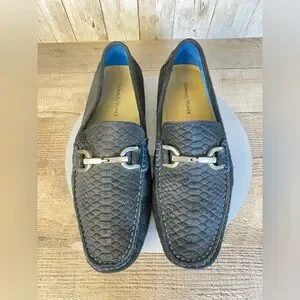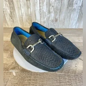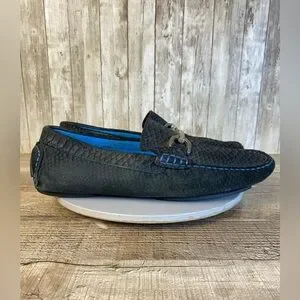 Donald Pliner Victor Mens Casual Shoes Embossed Black Leather Loafers Size 9M