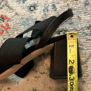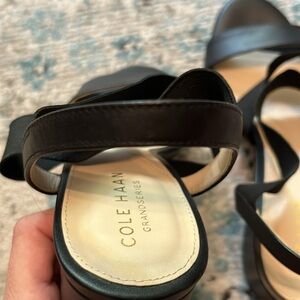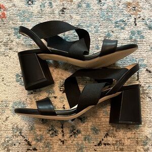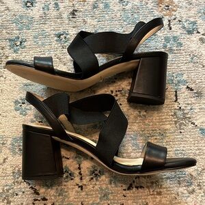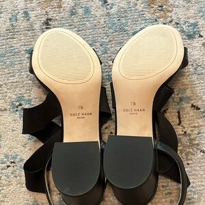 Cole Haan Grand Black Heels. Elastic straps mold to your foot and secure your confident steps in this slingback sandal with a chunky block heel