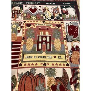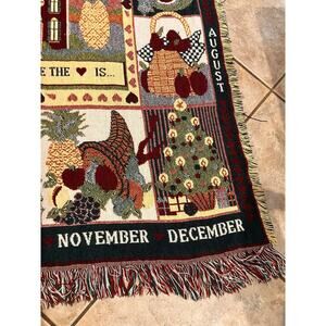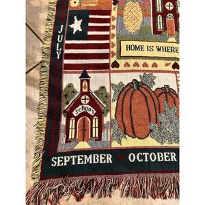 VTG Throw, Blanket, Wall Tapestry, God Bless, Calendar Seasons ,fringe 60X46