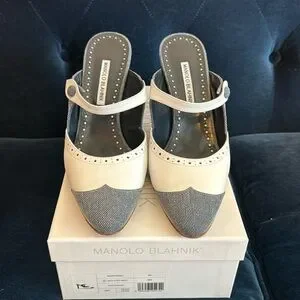 Perfect for any season! Heeled Denim and white Manolo Blahnik shoes. Worn once- EUC.