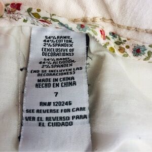 Tan Stitching design on back pockets Approximately 14 inch waist 32 inch inseam Ramie Cotton Spandex