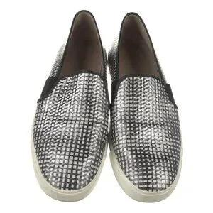 Vince Blair Metallic Gray Check Leather Slip On Sneakers l Women’s Size 7.5