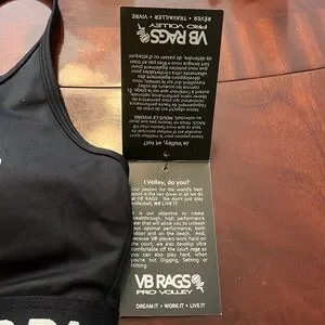 NWT VB Rags Hobbies Quick-Dry. Strappy Racerback Padded SportsBra. Size M. A sports bra lined beautifully with VB Rags custom Brushed Flowers print is sure to turn heads on the court! Made with Quick-Dry technology, this sports bra is perfect for game day. The back is styled as a strappy racer-back with back opening, and adorned with a rubber logo placement on the front.