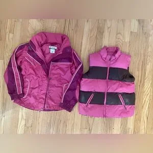Girls jacket + vest set for the fall. Columbia is lightweight and is a lot like a windbreaker. Comes with zipper and buttons for security.
