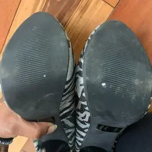 Charlotte Russe Platform Pumps Heels Slip On Stiletto Glitter Zebra Print Gray 9