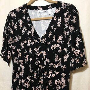 Issac Mizrahi Live! Black Floral Print Blouse Top EUC Medium M Button Down Front