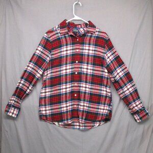 Lands' End Long Sleeve Button Down Plaid Red Women Size | 12