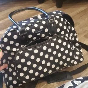 excellent condition. no rips, stains or tears. has both a handle and shoulder strap. small front compartment.