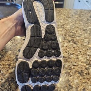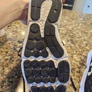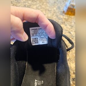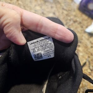 Worn for PE by my son. He had a growth spurt and outgrew them. Mens 9.5 Under Armour Charged Shoes