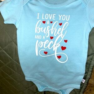 Never worn size 3-6 months baby blue onesie with white writing I LOVE YOU A bushel AND A peck.