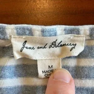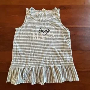Jane + Delancey Boy Mama Tank. Blue and white striped pattern. 100% cotton.