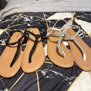 Torrid size 12 sandals. Never worn, both pairs included in purchase. White with silver and black.