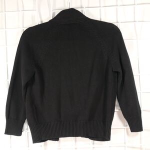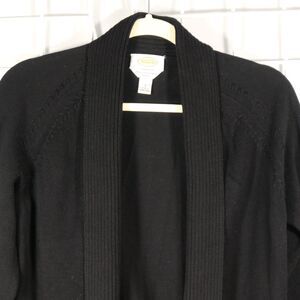 TALBOTS Womens Cropped Knit Cardigan Sweater Size S Black Ribbed Hem Cuffs