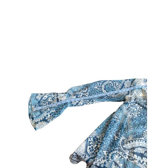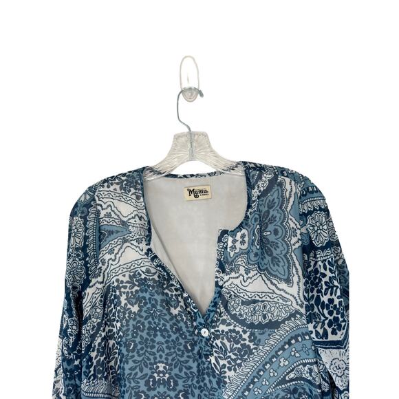 Show Me Your Mumu Blue White Paisley Boho Perveen Pirate Tunic Blouse.