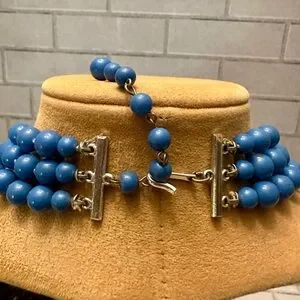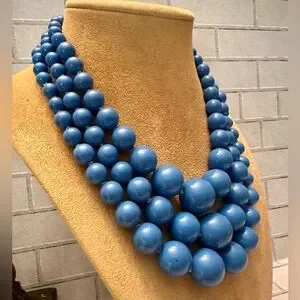 Vintage tapering size Ceil blue bead strand necklace knotted in between.